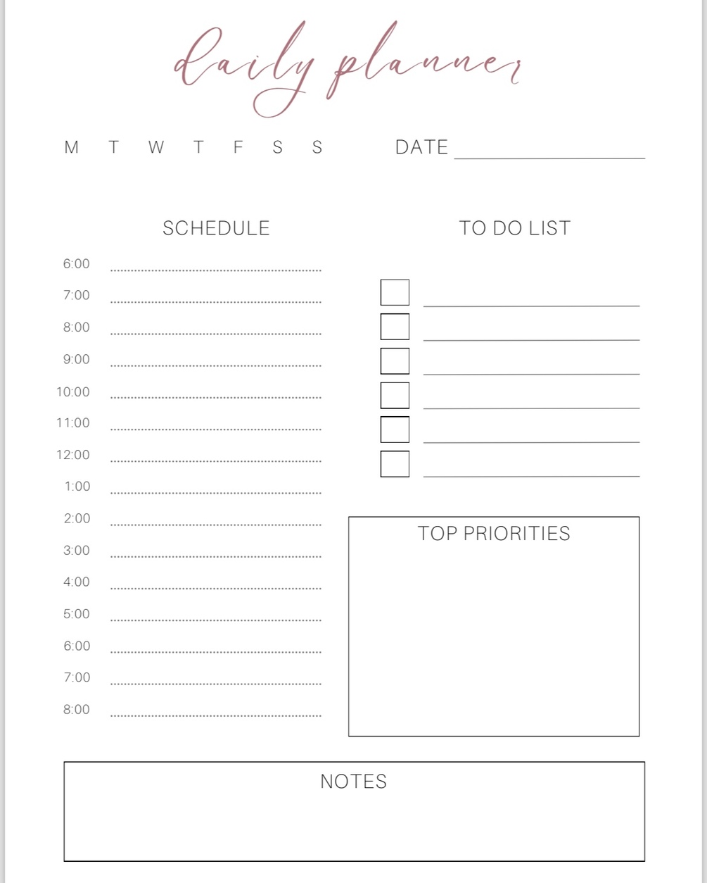A digital PDF file for the basic daily digital planner